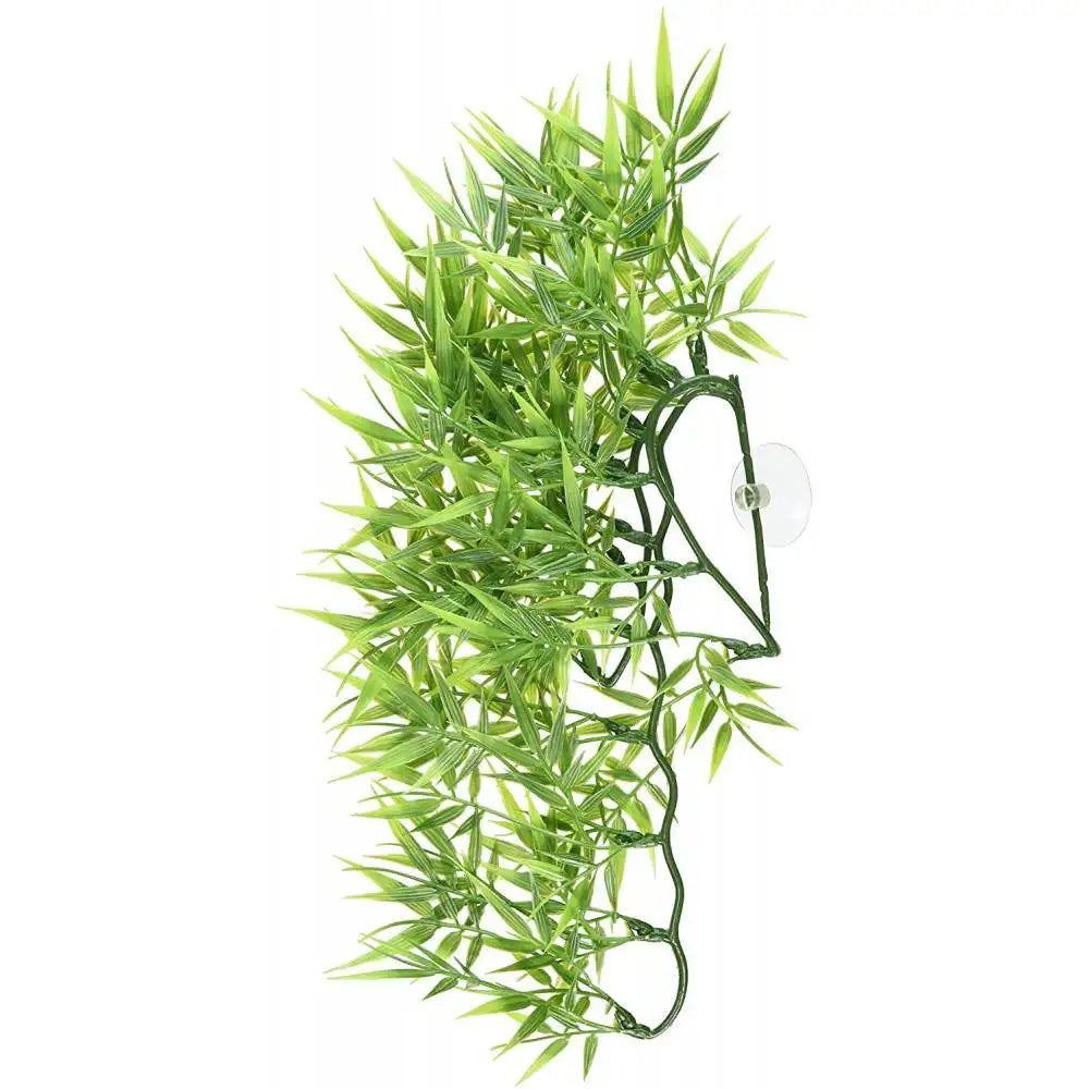 Cette plante artificielle imitation feuilles de bambou embellira votre terrarium et offrira à votre reptile ou amphibien un environnement plus agréable et sûr en lui offrant des cachettes.